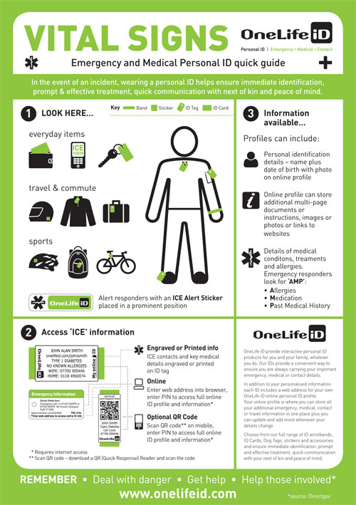 Personal IDs for sports, emergency and medical reasons are in widespread use. Whilst their existence is well recognised by Paramedics and Emergency Services we are continuing to raise awareness of emergency and medical ID wristbands, bracelets and dog tags within these groups and have developed a Training Pack that can be used to train paramedics and responders. It covers; where to find emergency and medical IDs, how to access them and the information available. Our current pack includes:
