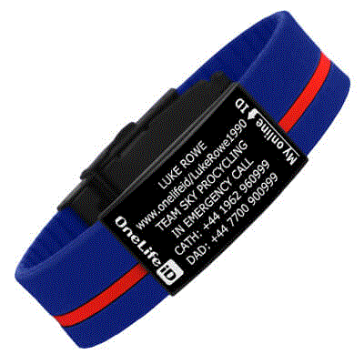 Whether it is training, racing on the big day or just enjoying life you can wear or carry important emergency, medical or contact information with the innovative OneLife iD cycling and sports ID wristbands and tags used by Team Sky rider Luke Rowe.